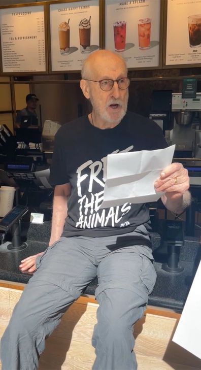 11 hours agoJames Cromwell has glued his hand to a Starbucks counter during a Peta protest in New York City calling for the coffee chain to stop charging extra for vegan milks. Plant-based milk shouldnt cost coffee drinkers extra the protesters insist. The Succession and Babe actor.